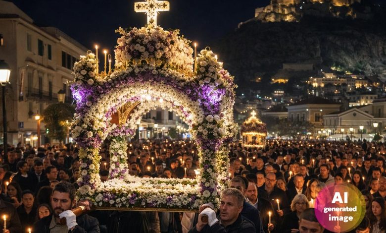 Με μαζική παρουσία πιστών πραγματοποιήθηκε στο Άργος η περιφορά των Επιταφίων τη Μεγάλη Παρασκευή, σε ατμόσφαιρα κατάνυξης και με επίκεντρο τη συνάντηση των ενοριών στην πλατεία Δημοκρατίας.