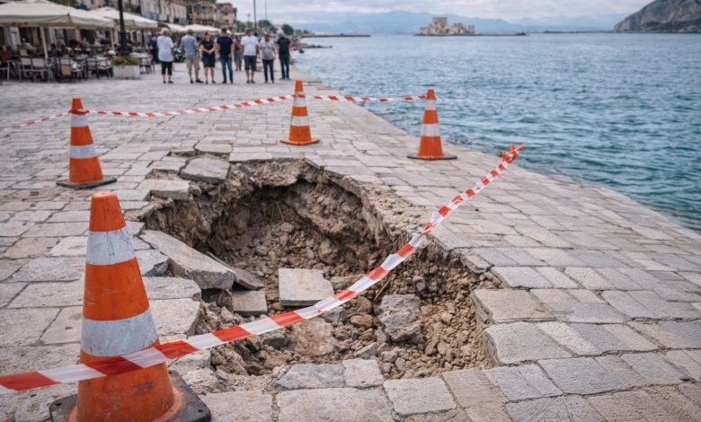 Ναύπλιο | Καθίζηση σε τμήμα του πλακόστρωτου στην παραλιακή
